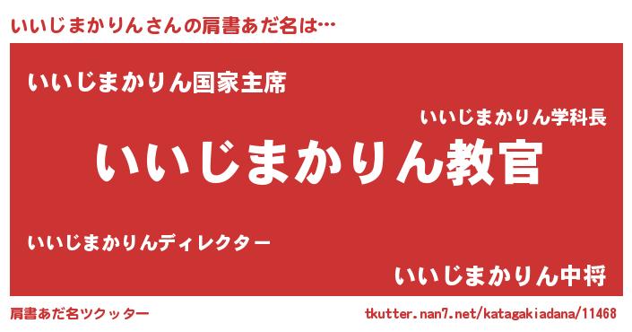 | 男性向けラノベタイトル風あだ名 | 『この素晴らしい世界にいいじまかりんを!』 |