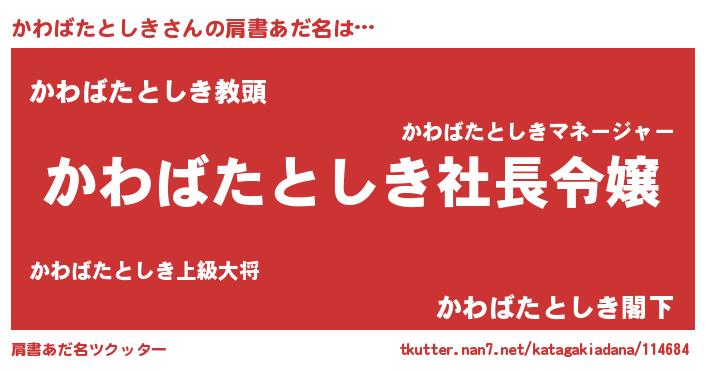 | 男性向けラノベタイトル風あだ名 | 『かわばたとしきの憂鬱』 |