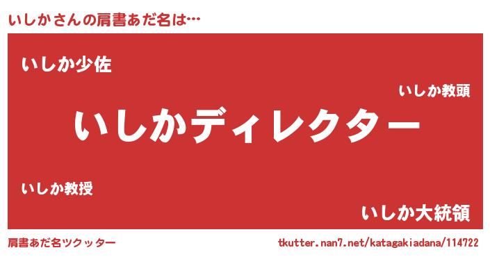 | ヒーロー風カッコイイあだ名 | 『ウルトラいしかマン』『ネオイシカ』 |