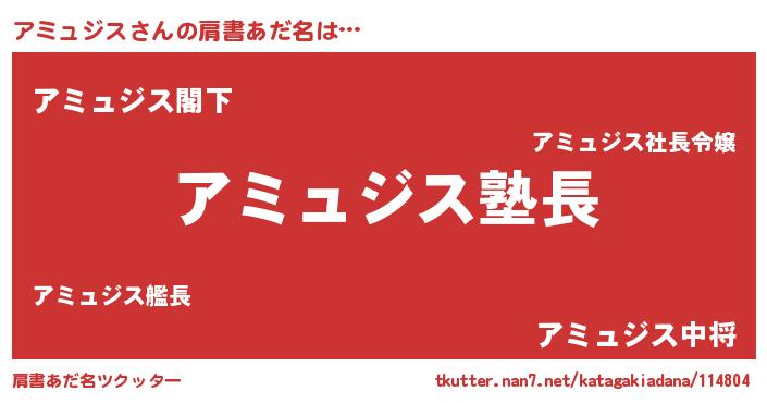 | 男性向けラノベタイトル風あだ名 | 『ダンジョンにアミュジスを求めるのは間違っているだろうか』 |