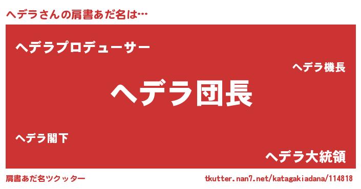 | 意味不明あだ名 | 『とにかく怪しいへデラ』『自称へデラ』 |