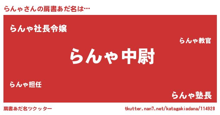 | ヘコむあだ名 | 『らんにゅー』『らんっちょ』 |