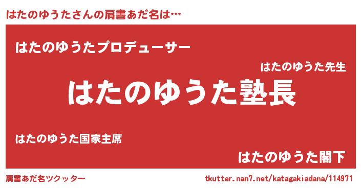 | ヒーロー風カッコイイあだ名 | 『炎刃騎士ハタ』『最強戦士ハタノユウタ』 |