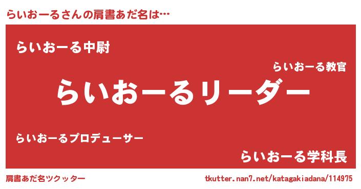 | ヘコむあだ名 | 『らいっちょ』『らいおーる(笑)』 |