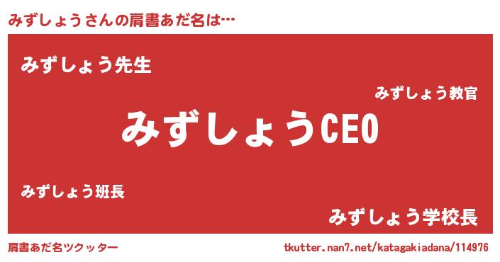 | ファンタジー風あだ名 | 『ミズフェル』『ミズディッシュ』 |