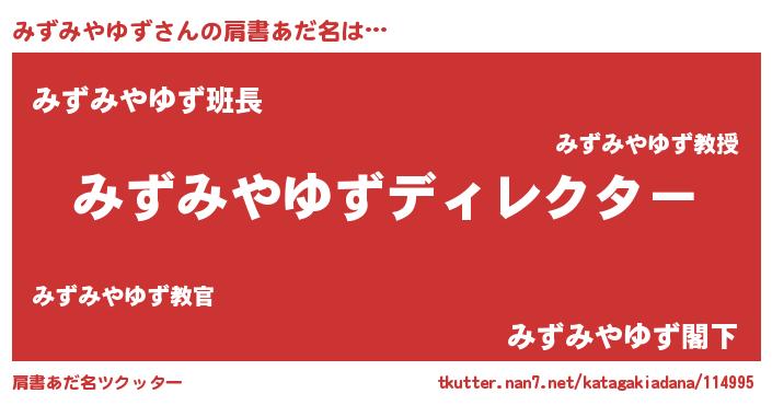 | ヒーロー風カッコイイあだ名 | 『魔戒騎士ミズ』『愛の使者みずみやゆず』 |