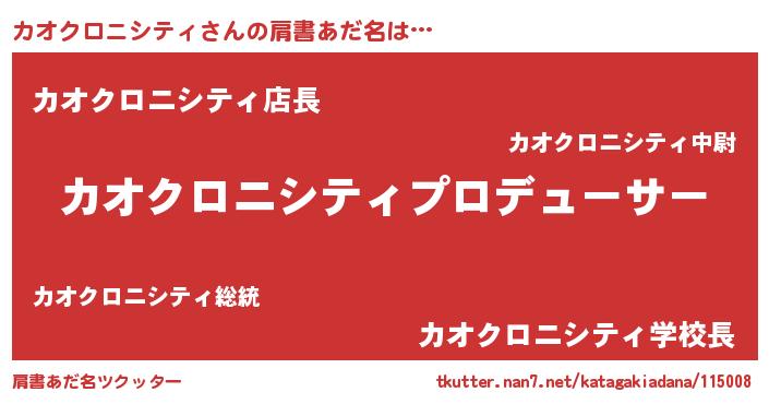 | 男性向けラノベタイトル風あだ名 | 『はたらくカオクロニシティさま!』 |