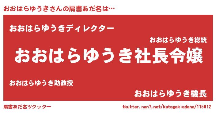 | 女子向けラノベタイトル風あだ名 | 『おおはらゆうき姫と円卓の騎士』 |