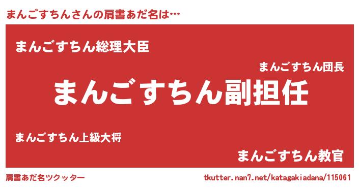 | 男性向けラノベタイトル風あだ名 | 『まんごすちんという概念が存在しない退屈な世界 』 |