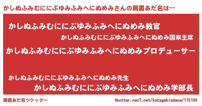 | 欧米人風あだ名 | 『アンジェラ・かしぬふみむににぶゆみふみへにぬめみ』 |