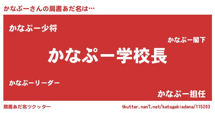 | ヒーロー風カッコイイあだ名 | 『天空の使者かなぷー』『ネオカナプー』 |