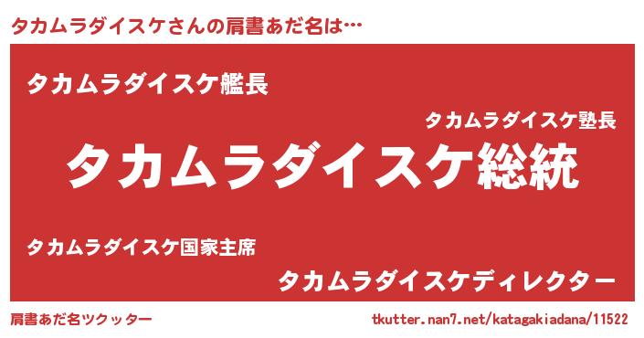 | 意味不明あだ名 | 『自称タカムラダイスケ』 |