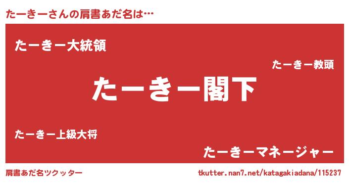 | 女子向けラノベタイトル風あだ名 | 『闇のたーきー』『たーきーの雑貨屋さん』 |