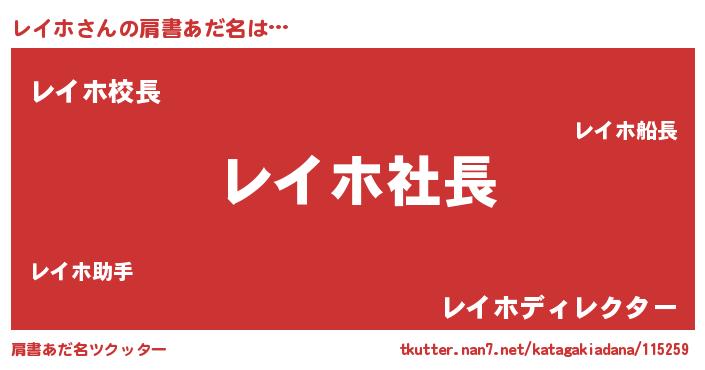| ヘコむあだ名 | 『レイにー』『レイホ(笑)』『豆乳』 |