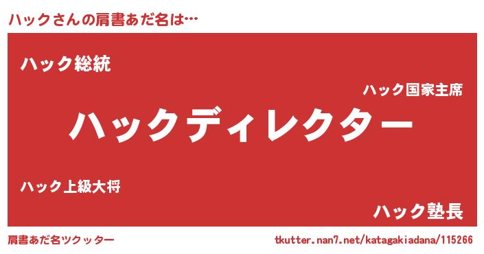| 意味不明あだ名 | 『自称ハック』『とにかく怪しいハック』 |
