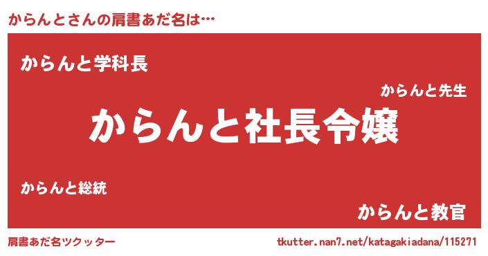 | 男性向けラノベタイトル風あだ名 | 『からんとの憂鬱』『魔弾の王とからんと』 |
