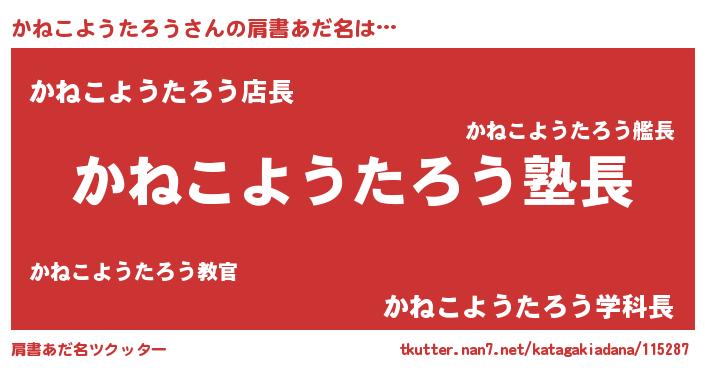 | 意味不明あだ名 | 『とにかく怪しいかねこようたろう』 |