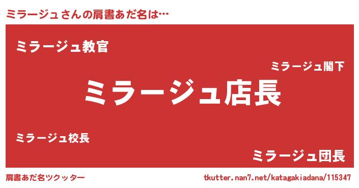 | ヘコむあだ名 | 『ミラにゅー』『ミラ太郎』 |