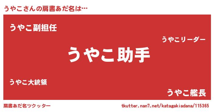| ヘコむあだ名 | 『うやこ(笑)』『うやぷりん』『豆乳』 |