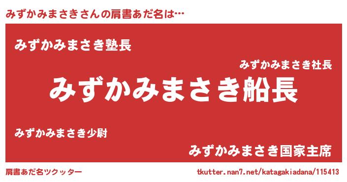 | 欧米人風あだ名 | 『みずかみまさき・ステッグマイヤー』 |