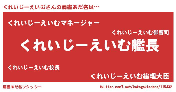 | 意味不明あだ名 | 『くれいじーえいむフォーエバー』 |