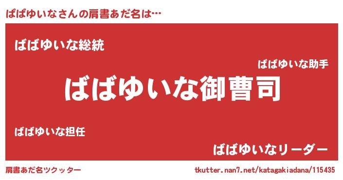 | 意味不明あだ名 | 『ペロリンばばゆいな』『自称ばばゆいな』 |