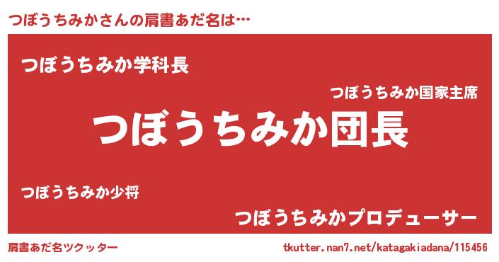 | ポケモン風あだ名 | 『ヒツボウチミカ』『ツックウザ』 |