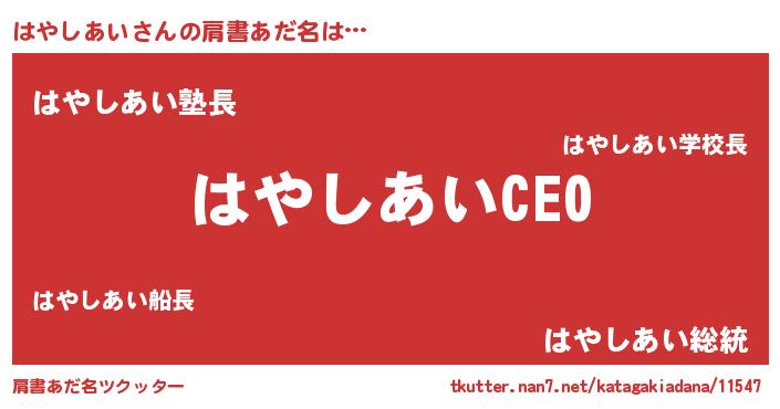 | 男性向けラノベタイトル風あだ名 | 『ハヤシアイアートオンライン』 |