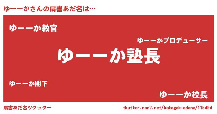 | 胡散臭い通販商品みたいなあだ名 | 『信頼と実績のペンダント…その名も「ゆーーか」』 |