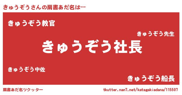 | 胡散臭い通販商品みたいなあだ名 | 『億万長者になれるブレスレット…その名も「きゅうぞう」』 |
