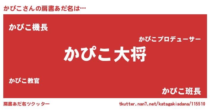 | 男性向けラノベタイトル風あだ名 | 『転生したらかぴこだった件』 |