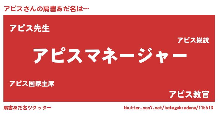 | 意味不明あだ名 | 『永久保存アピス』『自称アピス』 |