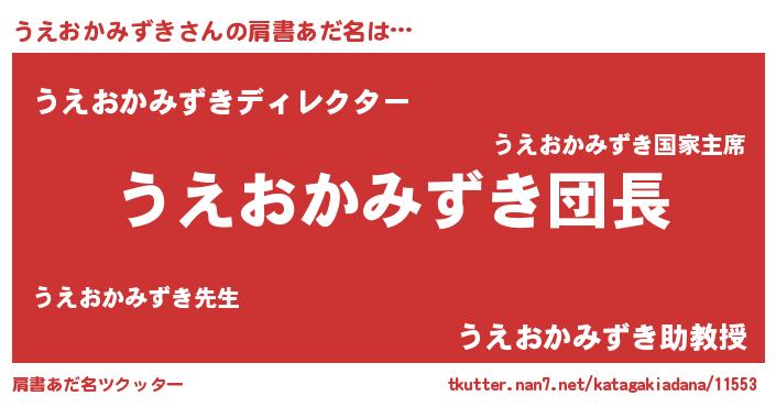 | ポケモン風あだ名 | 『ヒウエオカミズキ』『ウエゴンZ』 |