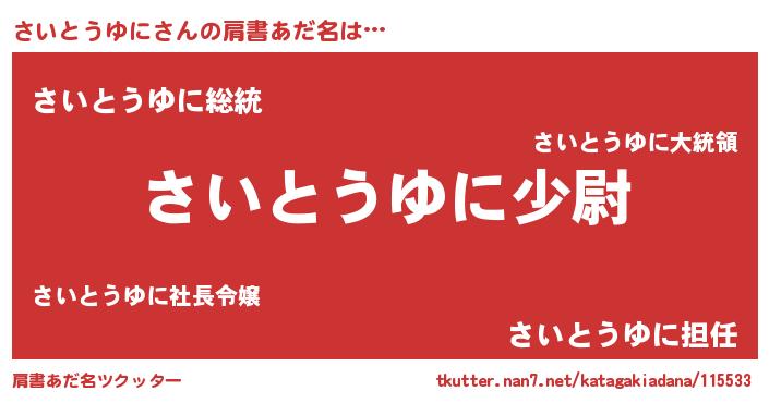 | ヘコむあだ名 | 『さいとうゆに(笑)』『なまこ酢』 |