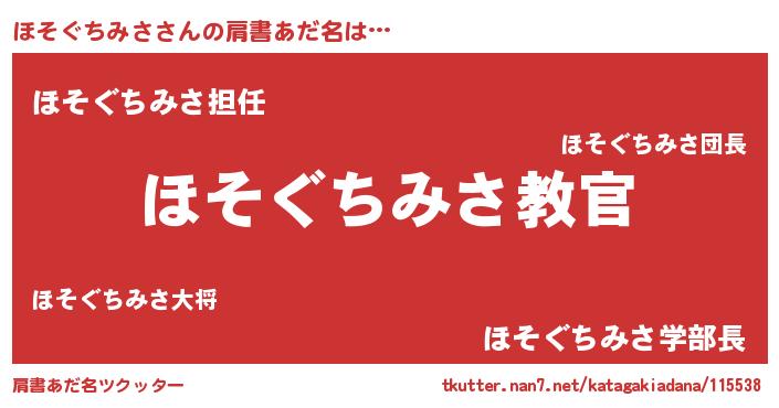 | 男性向けラノベタイトル風あだ名 | 『この素晴らしい世界にほそぐちみさを!』 |