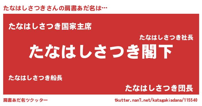 | 女子向けラノベタイトル風あだ名 | 『たなはしさつきなんてお断りですっ。』 |