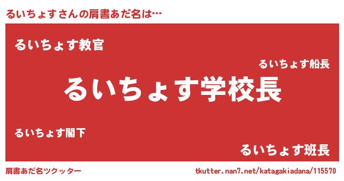 | 男性向けラノベタイトル風あだ名 | 『おまえをオタクにしてやるから、俺をるいちょすにしてくれ! 』 |