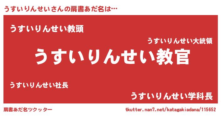 | 男性向けラノベタイトル風あだ名 | 『この素晴らしい世界にうすいりんせいを!』 |