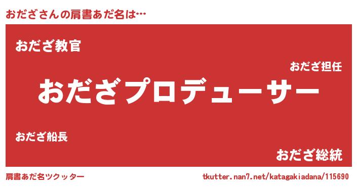 | 男性向けラノベタイトル風あだ名 | 『おだざに滅ぼされるだけの簡単なお仕事です』 |