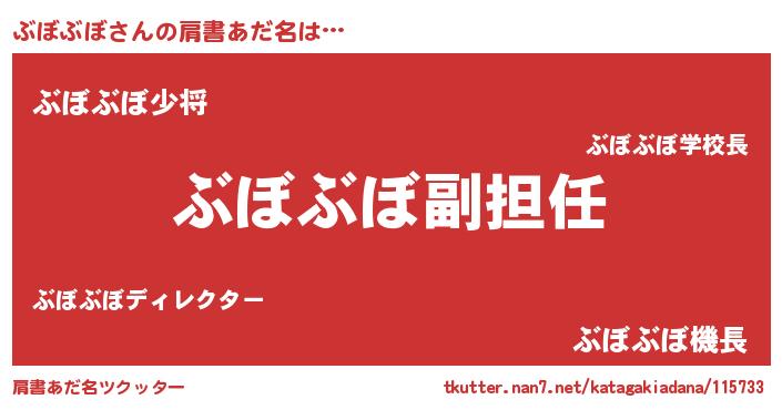 | 女子向けラノベタイトル風あだ名 | 『ぶぼぶぼの契約王妃』『ぶぼぶぼ恋絵巻』 |