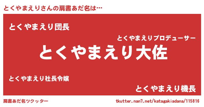 | 胡散臭い通販商品みたいなあだ名 | 『信頼と実績のサプリメント…その名も「とくやまえり」』 |