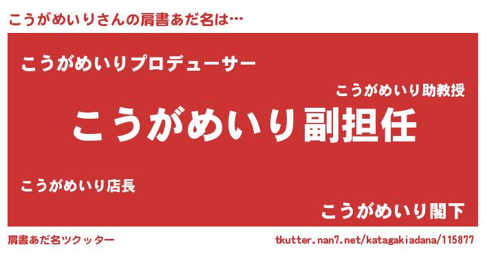| ヘコむあだ名 | 『こうがめいり(遠い目)』『こうっふぃ~』 |