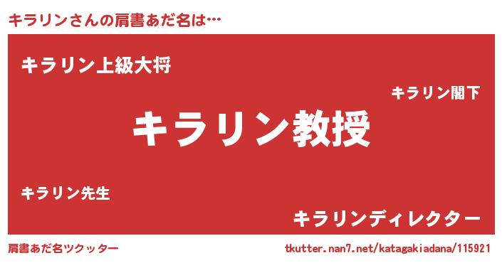 | 男性向けラノベタイトル風あだ名 | 『ノーゲーム・ノーキラリン』 |