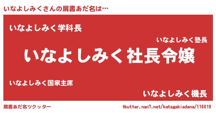 | 男性向けラノベタイトル風あだ名 | 『いなよしみくの憂鬱』 |