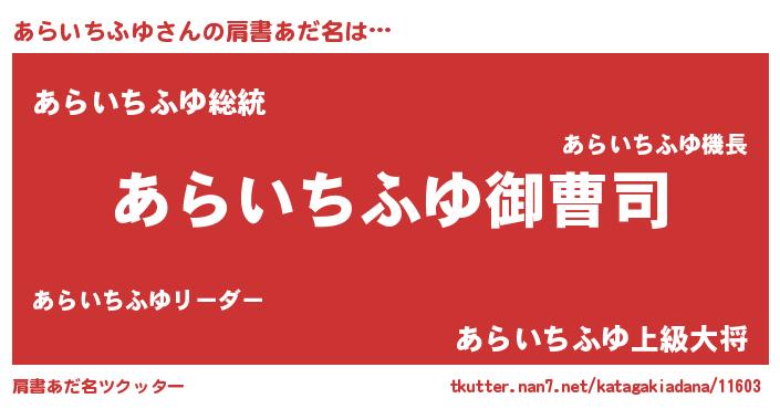 | 胡散臭い通販商品みたいなあだ名 | 『必ず成功する霊験あらたかなお札…その名も「あらいちふゆ」』 |