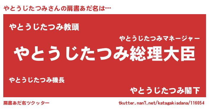 | 欧米人風あだ名 | 『やとうじたつみクリステル』 |