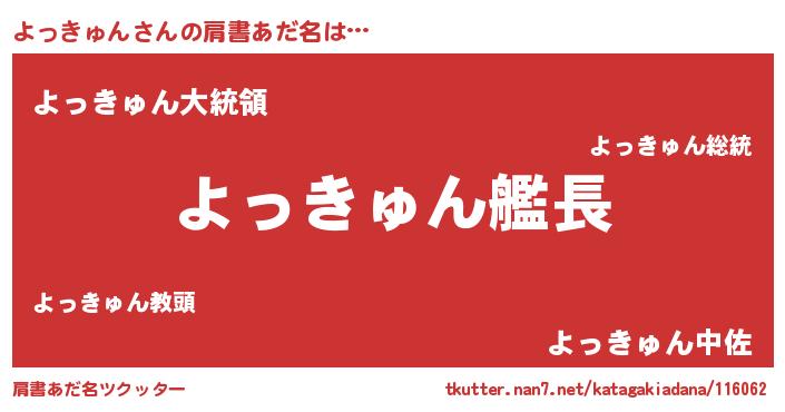 | 男性向けラノベタイトル風あだ名 | 『緋弾のヨッキュン』 |