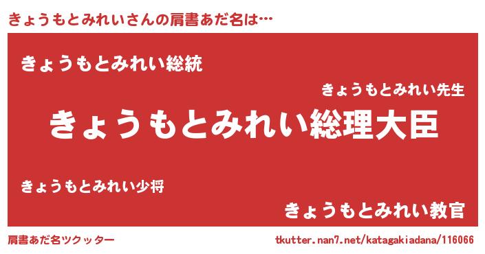| 男性向けラノベタイトル風あだ名 | 『やはりきょうもとみれいの青春ラブコメはまちがっている 』 |