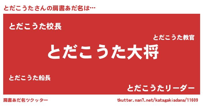 | 男性向けラノベタイトル風あだ名 | 『転生したらとだこうただった件』 |