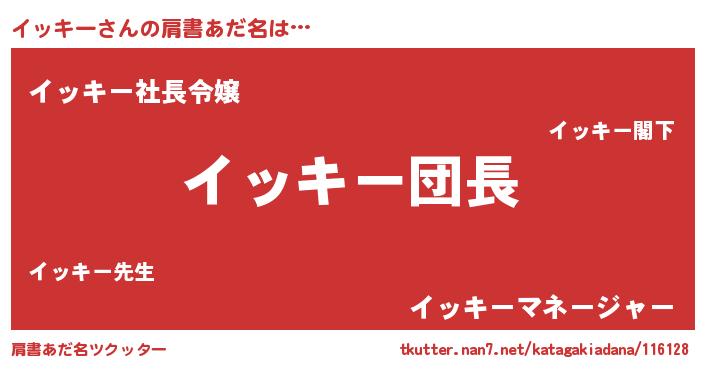 | ヒーロー風カッコイイあだ名 | 『天弓騎士イッ』『スーパーイッキー』 |
